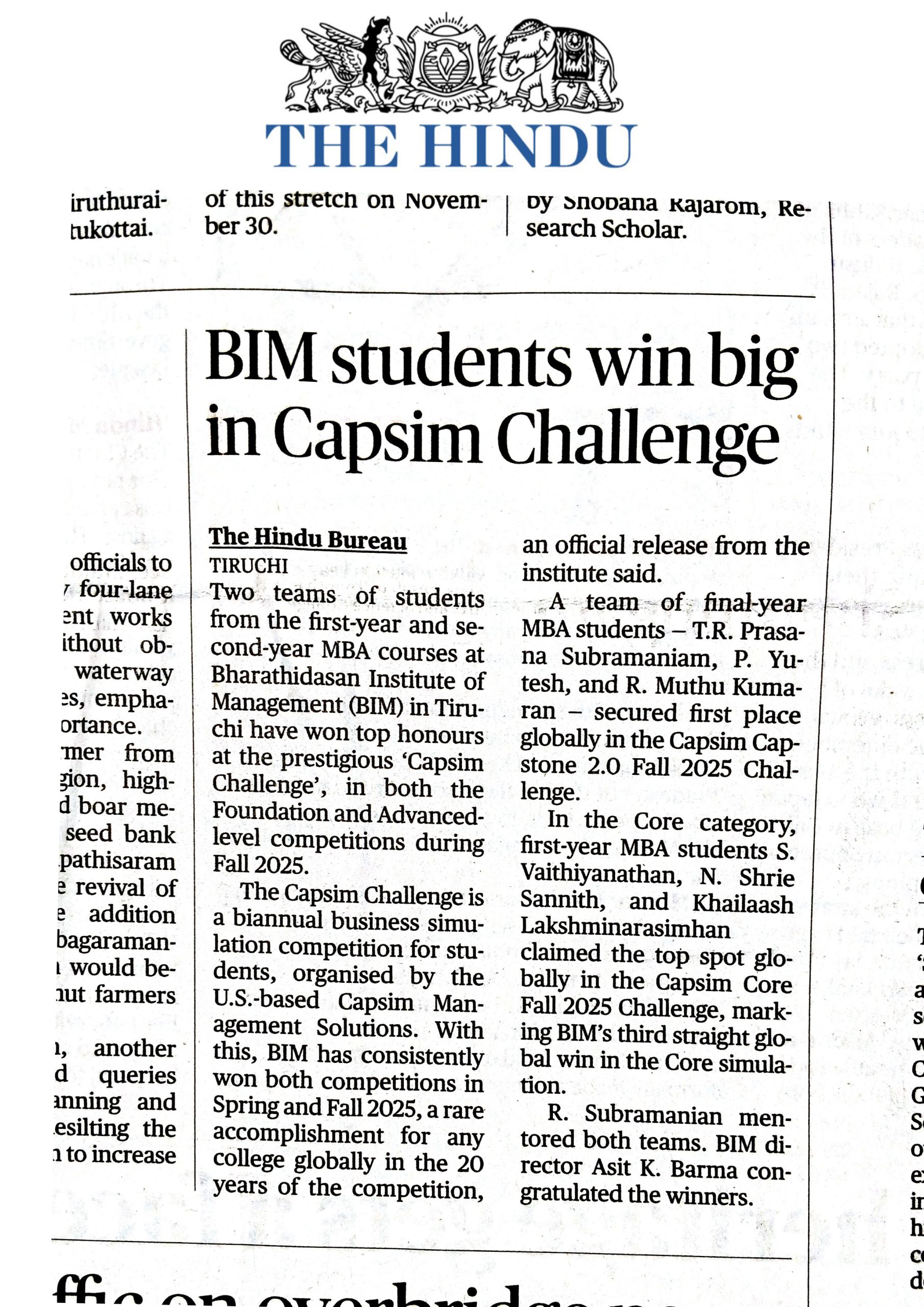 BIM students win big in Capsim Challenge